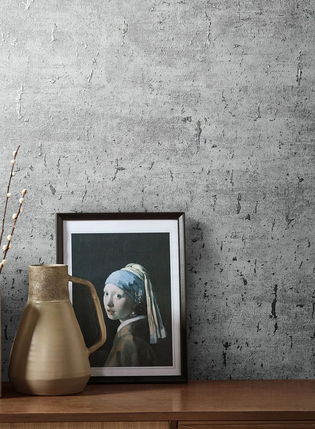 Die unverwechselbare Optik von echtem Kork entsteht durch das Zusammenspiel zwischen hellen Nuancen von Grau und schimmerndem Silber Metallic. In das Vinyl der Tapetenoberfläche ist darüber hinaus die Struktur des Naturmaterials als feine, fühlbare Struktur eingeprägt. Deshalb wirkt diese Kork-Imitation so natürlich. Für Shabby Chic oder Industrial Chic ist Cork Illusion eine Kulisse voll zurückhaltender Coolness.